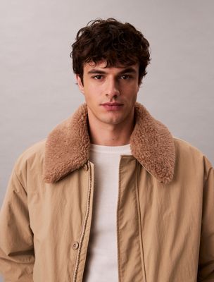 Abrigo tres cuartos de plumas con cuello alto de borreguito