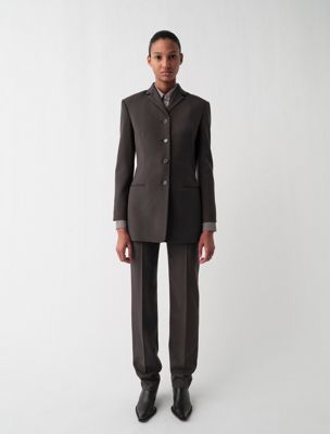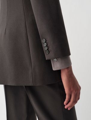 Blaser de cuello alto y cuatro botones con ajuste slim. Ligeramente recortado en las mangas y totalmente forrado. Fabricado en 100 % lana.