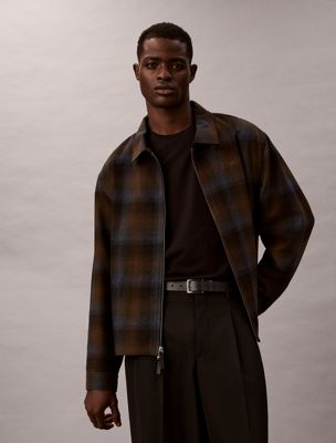 Chaqueta con cremallera de franela de mezcla de lana teñida en hilo