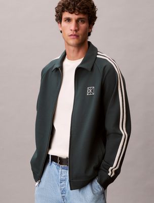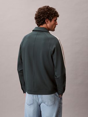 Esta chaqueta deportiva, inspirada en la ropa deportiva retro, está confeccionada en un punto elástico refinado con rayas en contraste y un elegante cuello camisero.