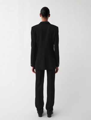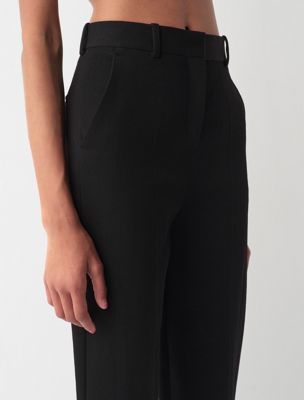 Pantalón slim de talle alto confeccionado en sarga de lana compacta texturizada 100 %. Se caracterizan por sus marcados pliegues delanteros y traseros, que les confieren un acabado pulido y entallado.
