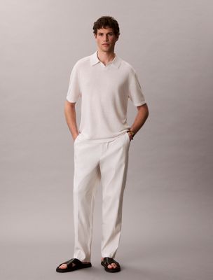 Una versión minimalista del polo clásico, diseñada con un cuello abierto y un tejido de lino transpirable de punto suave.