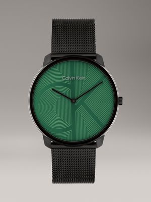• logo Calvin Klein en la esfera, el cierre y la caja