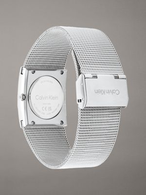 • logo Calvin Klein en la esfera, el cierre y la caja