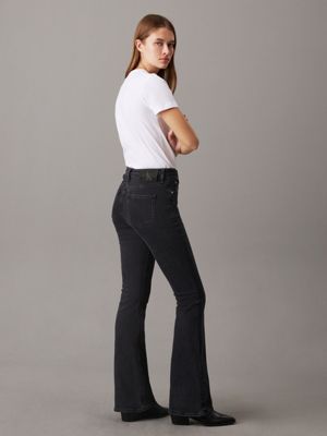 Revisitando un clásico denim: los bootcut jeans que se ajustan por encima de la cintura con perneras pitillo y un bajo acampanado para un efecto de alargamiento de la pierna.